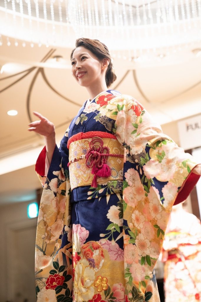 私の強みは、体のバランスの良さと首の長い所です。この首の長さは、昔はあまり好きではありませんでしたが、お着物のショーに出させて頂いていた時に、評価していただき、自分のアピールポイントになりました。年齢を重ね、お着物の良さをより感じるようになり、自分自身の魅せ方でお着物の良さを伝えたいと思います。